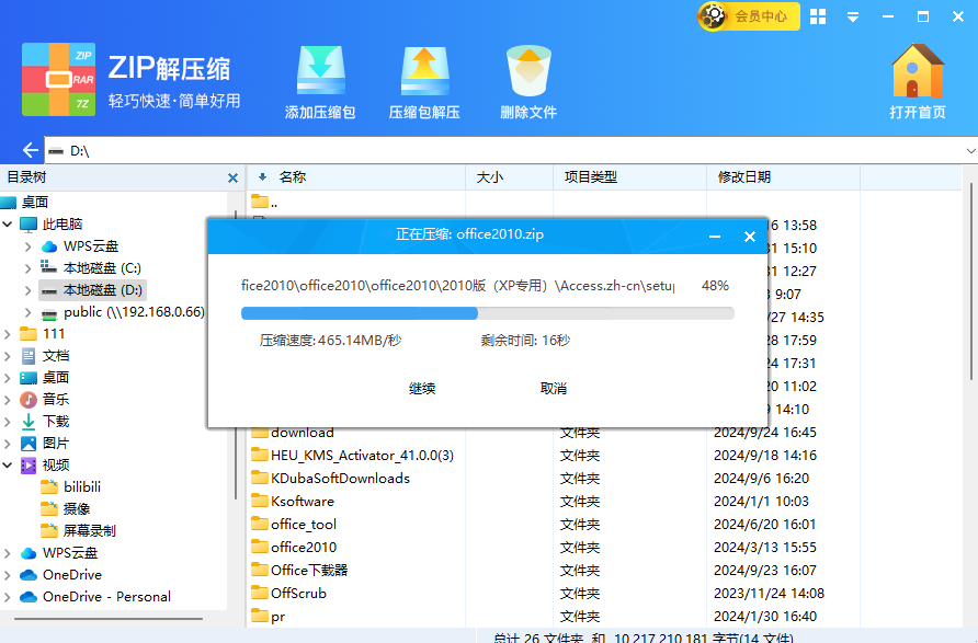 解压1G文件,最快15秒